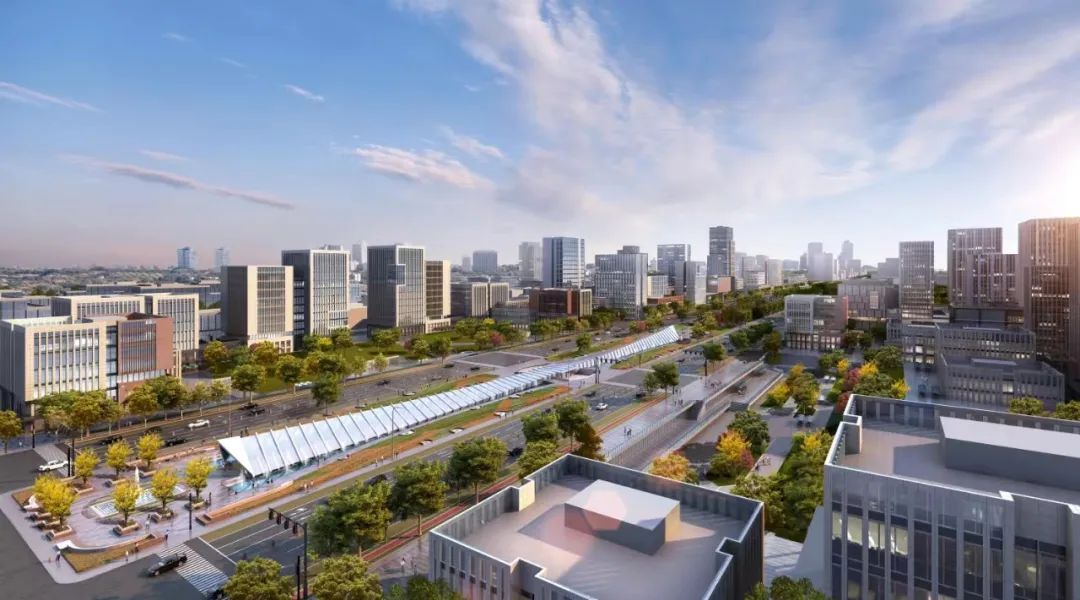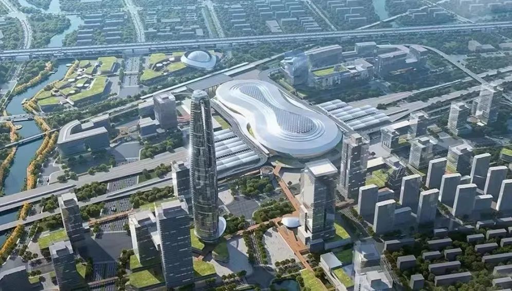 松江高铁站站房位于上海市松江区,站房建筑规模达6万平方米,站场规模为7台19线,加上原松江南站2台4线,站场总规模将达到9台23线。松江南站采用站城综合体式设计,配备高架落客平台、城市交通换乘服务中心等设施,为旅客提供更为便捷的出行体验。同时,新站房的设计还融入了“云间映玉兰、花开无限环”的寓意,与上海市松江区城市文脉相契合。