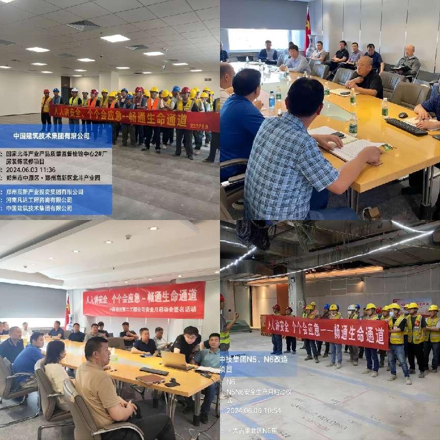 数字能源事业部中国光大银行项目、华北分公司广东电网装修项目、生物医学工程事业部兰州市妇幼保健院项目、华南分公司未来之芯精装修项目、华中分公司交投汉津华园项目等在施项目以全员警示教育、特殊工种培训、班前讲话、安全答题等多种方式,深入开展安全培训活动。