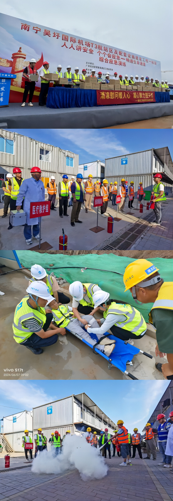 为检验和提高管理人员、作业人员应急能力和水平,锻炼队伍,完善机制,预应力工程事业部南宁吴圩国际机场T3航站楼工程、华北分公司广东电网装修项目、机电工程分公司无锡酒店商办机电工程、西北分公司宜昌EPC工程总承包项目等各在施项目组织或参与消防、防汛、高处坠落等应急救援演练,进一步增强了员工应急处置能力。