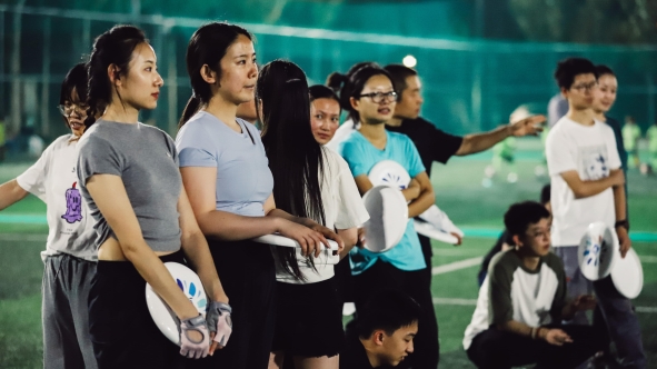 活动中,大家热情高涨,各展风采,飞盘旋转、飞舞,划出优美的弧线,尽显中技集团青年员工团结拼搏、积极奋进的良好风貌。