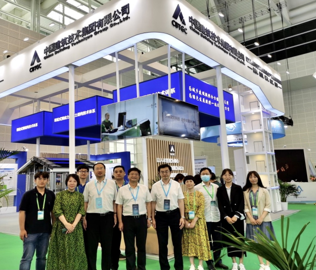 中技集团展台以实物模型、视频和图文展板等形式全方位展示了自主创新研发技术和产品,包括装配式轻钢轻混凝土结构房屋、聚苯模板免拆混凝土墙体、光伏瓦和光伏保温一体化挂板、装配式预应力混凝土结构技术体系、装配式钢结构一体化电梯等。吸引了众多企业客户前来参观、询问和交流,提升了集团公司在装配式低碳建筑和既有建筑改造领域的行业影响力。