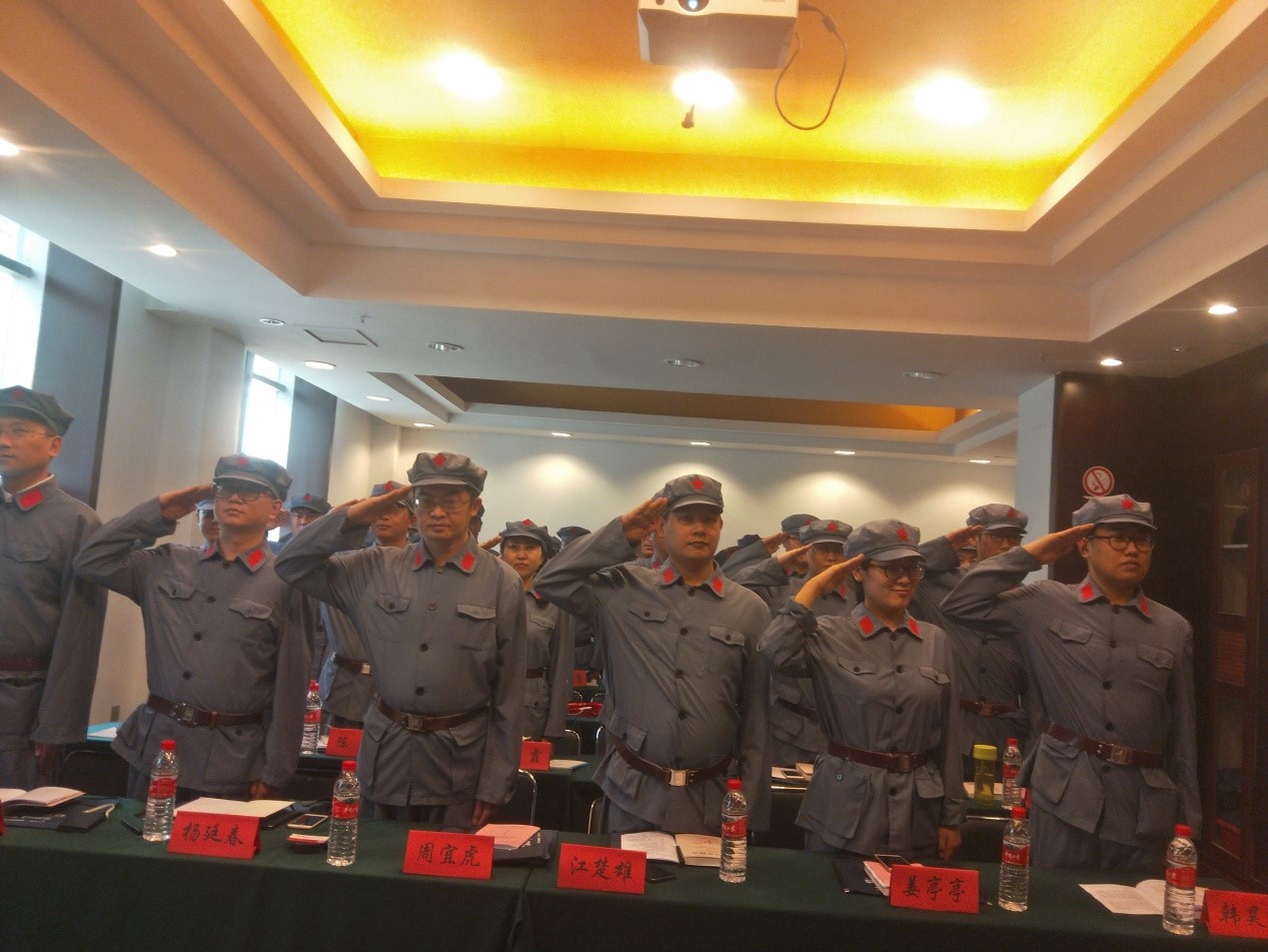 19日下午,培训班在庄严的国歌声中拉开序幕,集团公司党委委员、副总裁周宜虎出席开班仪式并讲话。周总指出,井冈山是没有围墙的革命历史博物馆,是我们接受革命传统教育、陶冶情操、净化心灵、提升境界的生动课堂。选择在井冈山举办此次培训班,是因为井冈山的每一个教学点都是一部活教材,都能让党员干部的心灵受到震撼与净化。此外,他对学员们提出了三点期待:要与时俱进,把握井冈山精神的真正内涵;要统一思想,充分认识加强党性修养的重要意义;要端正学风,确保学习培训取得实效。会上,还举行了班级授旗、学员学行军礼活动。
