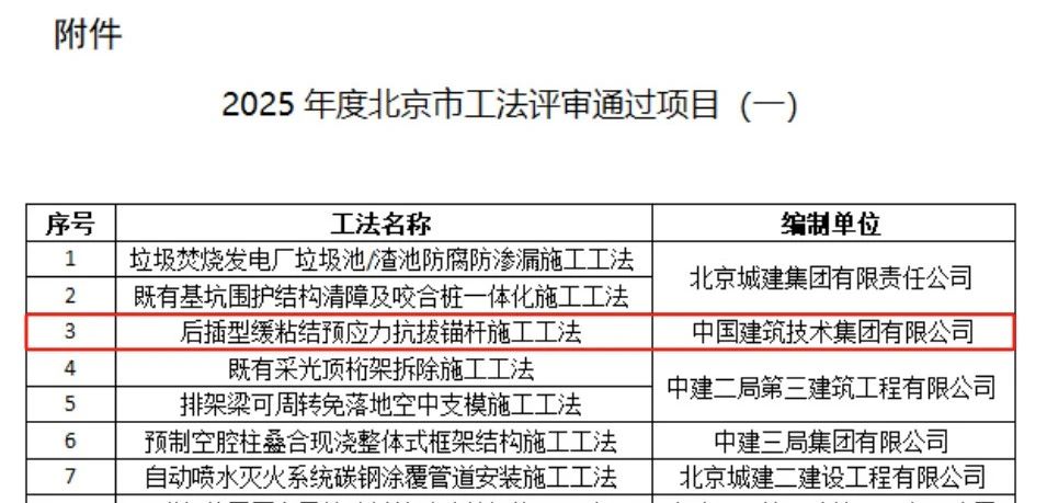 近日,由k1体育注册就送38元申报的“后插型缓粘结预应力抗拔锚杆施工工法”通过了北京市住房和城乡建设委员会组织的北京市工法专家评审,这一成果标志着k1体育注册就送38元在技术创新、施工质量和项目管理等方面实现了新的突破。