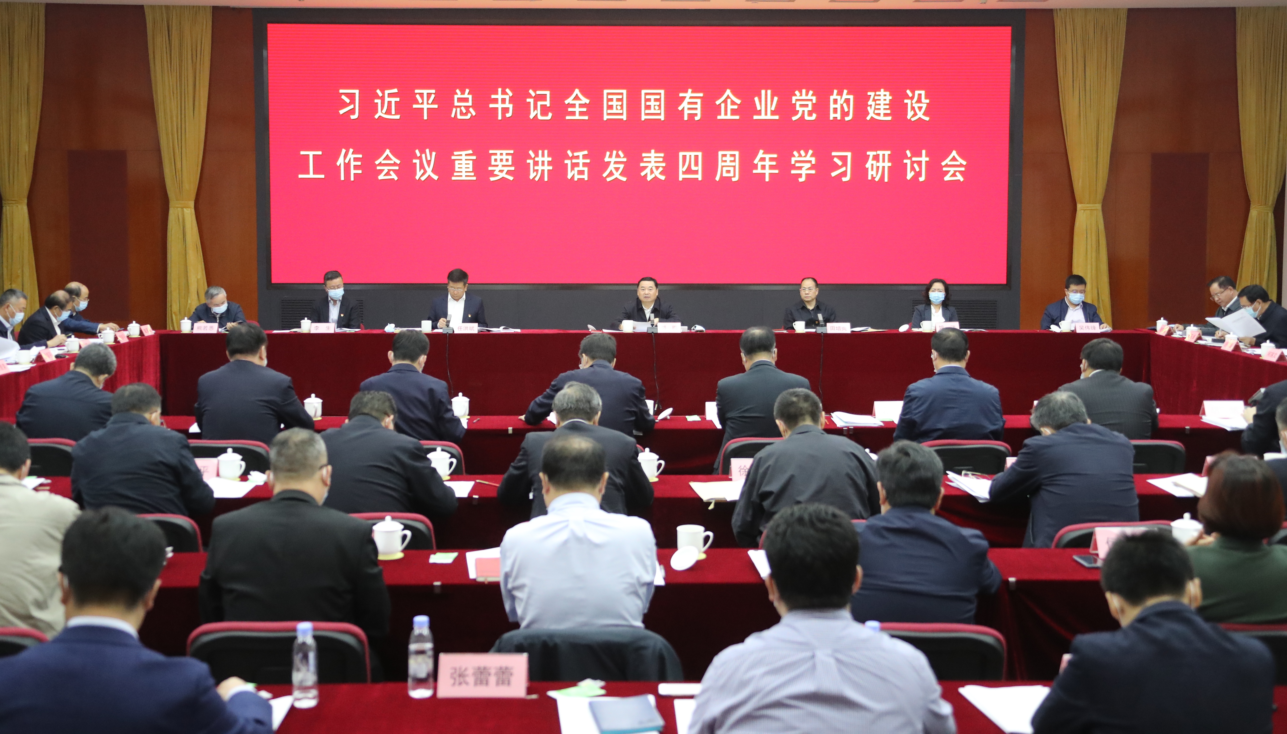 10月10日,在习近平总书记全国国有企业党的建设工作会议重要讲话发表四周年之际,国资委党委召开学习研讨会,组织中央企业重温总书记重要讲话精神,交流学习实践体会,总结经验,持续巩固深化中央企业党的建设工作成果,以高质量党建引领高质量发展。国资委党委书记、主任郝鹏出席会议并讲话强调,要以习近平新时代中国特色社会主义思想为指导,持续深入学习贯彻习近平总书记关于国有企业改革发展和党的建设的重要论述,进一步增强“四个意识”、坚定“四个自信”、做到“两个维护”,坚持党对国有企业的全面领导,加强国有企业党的建设,为做强做优做大国有资本和国有企业、培育具有全球竞争力的世界一流企业提供坚强保证。中央政策研究室副主任田培炎出席会议并讲话。国资委党委委员、副主任任洪斌主持会议。中央纪委国家监委、中央组织部等有关部门负责同志应邀参加会议。