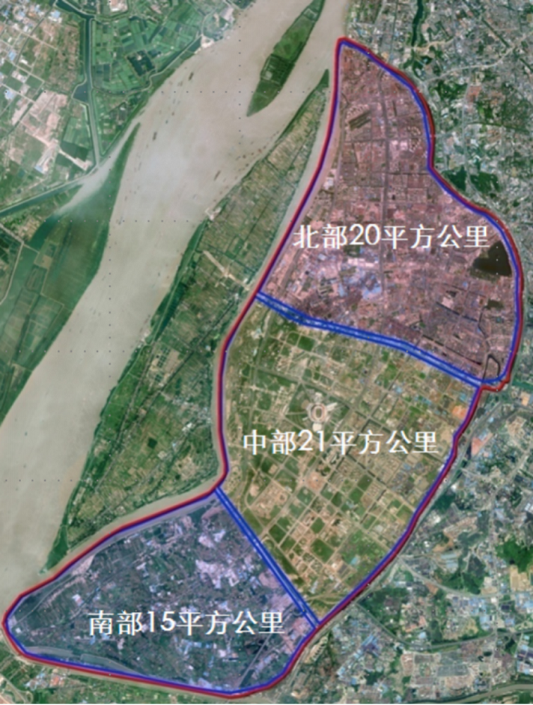河西新城位于南京主城西南部,北起三汊河,南接秦淮新河,西临长江夹江,东至外秦淮河、南河,总面积约94平方公里,其中,陆地面积56平方公里,江心洲、潜洲及江面38平方公里。
