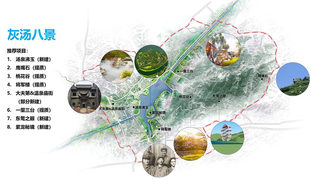 2.1.温泉保护与利用:在合理温泉开发的基础上,通过泡温泉、游温泉、戏温泉、吃温泉、赏温泉等活动结合灰汤山水文化、民俗文化、美食文化打造全国温泉品类最多、体验感最强的温泉度假区。